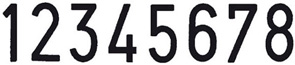 Numbering stamp with digit height 15 mm and width 90 mm. Combination of letters and special characters - ATYP - is also possible.